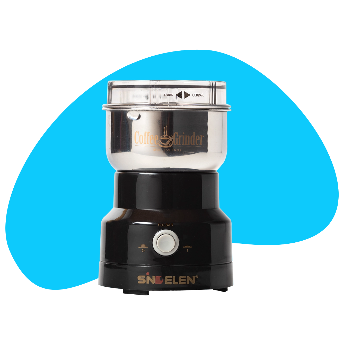 Con su motor de 165 W, este molinillo te asegura un molido rápido y parejo para que cada taza tenga todo el aroma y sabor que buscas. Su diseño en negro con detalles de acero inoxidable lo hace elegante y resistente, perfecto para tu cocina.